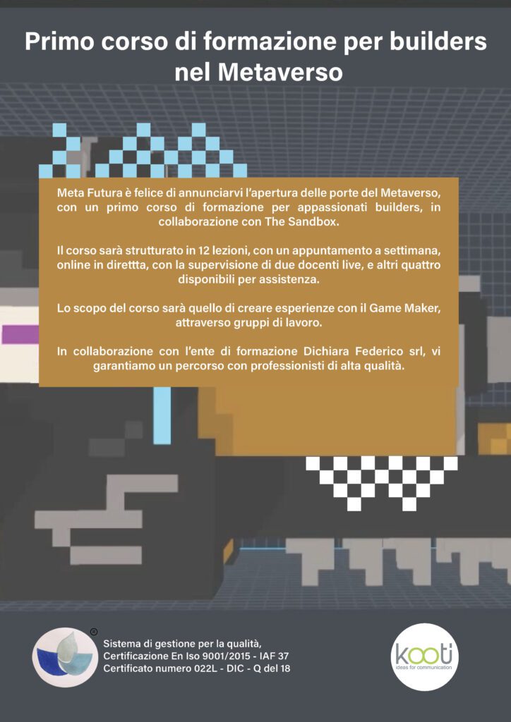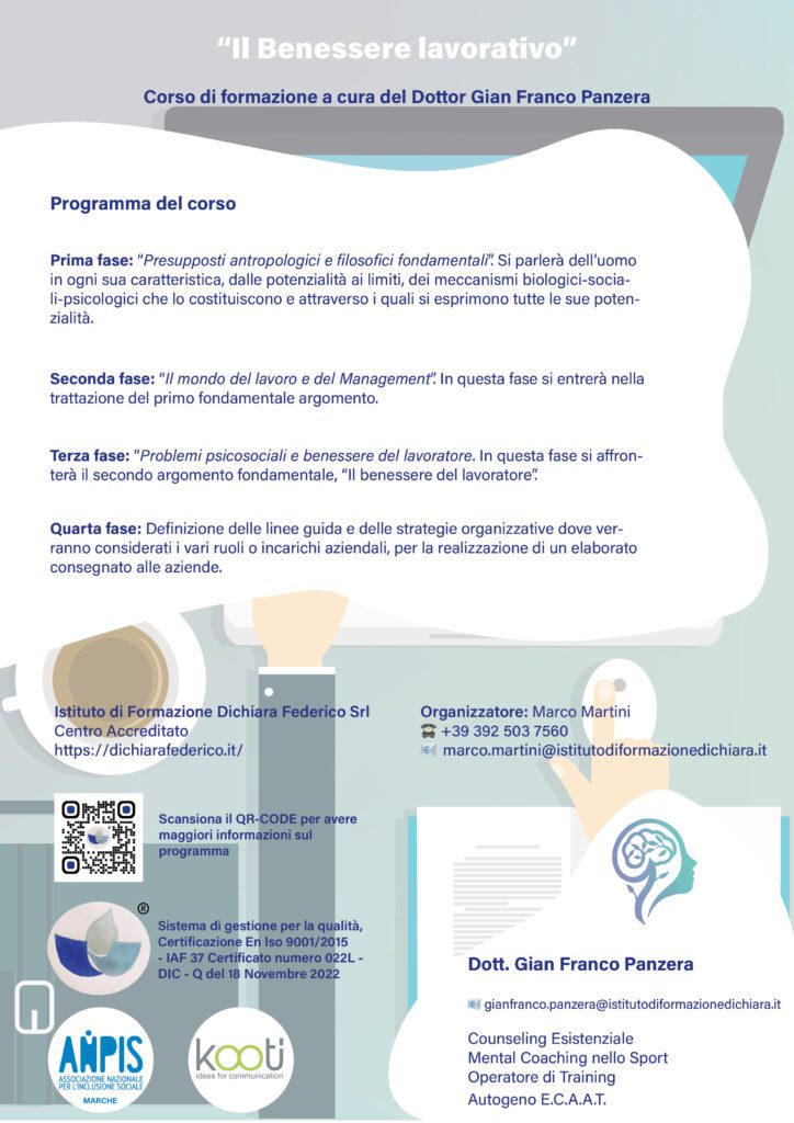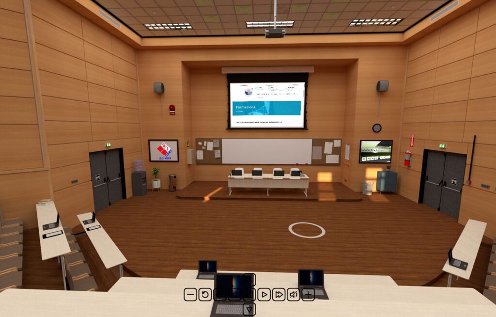 L’Istituto di formazione Dichiara Federico Srl, in collaborazione con l’Agenzia di Comunicazione KooTj, ha predisposto un auditorium per poter erogare corsi di formazione anche interamente da remoto, fruendo del live streaming e dell’interattività e coinvolgimento tipici di un tour virtuale avanzato, con possibilità di gestire collegamenti, slides, video, far eseguire test in real time agli allievi e molto altro ancora.